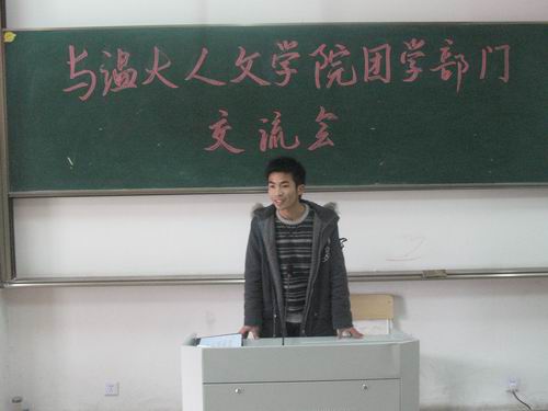 共派出了17名团委学生会成员来到温州科技职业学院与其互谈经验,共求进步。交流会在两院团委学生会的掌声中开始了。首先,两院分别作了一次自我介绍,团委副书记余斌代表球探体育