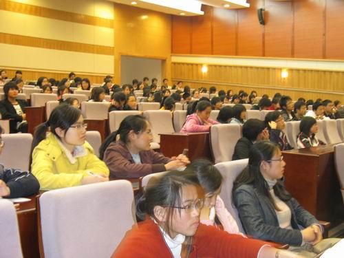 接着,徐岱教授展开了以"大学教育与人文理念"为话题的演讲。徐教授的演讲言辞简明,但思想深刻。作为一个大学生,应该把握住四年的大学时光,不仅要学习知识文化,更为重要的是要培养人文精神、人文底蕴,学会生活。在现代社会,快乐很多,幸福却很少。要让自己幸福,要看你自己是以怎样的观念看待世界。此时此刻,一个健康向上的人文理念就显得尤为重要。