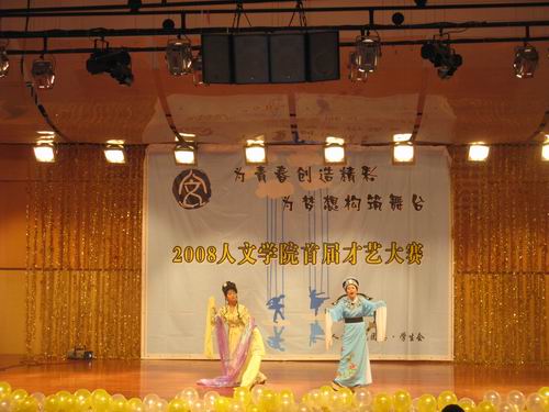 大赛分为语言、声乐、舞台三个组别,内容丰富,形式多样。参加比赛的十六组选手进行了精彩的角逐。抑扬顿挫的诗情朗诵,绝美柔情的飘然起舞,扣人心弦的深情歌唱,让观众突而沸腾,突而静止,好不热闹。最终,07中本一班陈彦羽同学以优美的古筝独奏赢得了全场的喝彩,获得了此次比赛的一等奖。值得一提的是有两组选手为大家献上了令人耳目一新的越剧表演,让观众大饱耳福。此次大赛获奖的选手还有王露婷、万梦解、王懿、程露佳、赵淦、顾琪伟等同学。