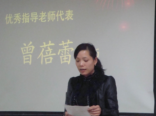 球探体育 党支部副书记魏成春,优秀指导老师代表周小兵、徐华柄、 林亦修 ,学生科科长李浦豪,辅导员曾蓓蕾、屠建斌以及荣获省、市、校级优秀团队负责人和优秀先进个人共同出席了本次会议。