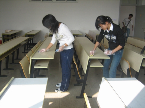 本次活动得到了院领导的大力支持和广大志愿者的积极参与。活动中,同学们弘扬吃苦耐劳的精神,人人拿工具,对球探体育 教学楼所有课桌上的污垢进行了全面的清洗。全体参加人员始终以“还课桌一张美丽的面容,还教室一份温馨的宁静”为目标,辛勤劳作,刺鼻的香蕉水顽固的污渍丝毫没有影响同学们工作的积极性。