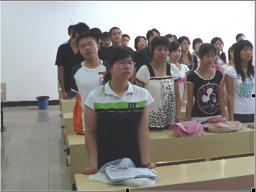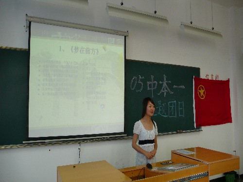 2007年为我校迎接2008年教育部本科教学水平工作评估的关键之年,全校师生都应予以支持和配合,高度关注,做到重视到位、学习到位、宣传到位、行动到位。在全校兴起为迎评作贡献的浪潮下,举办这次主题班会,对于评估的动员、准备工作具有重要意义。05中本一班团支部开展此次主题团日班会活动,围绕班会主题展开,意在增强班级凝聚力,响应学校“迎评促建”的号召,推进班级文化建设,构建和谐班级,展现当代青年学生良好风貌。经过前期一段的精心筹划和努力, “紧跟迎评促建,展现青年风尚”05中本一班迎评主题班会团日活动于6月7日在北校1-410如期召开,球探体育 曾蓓蕾老师、部分兄弟班级班委出席了本次主题班会。05中本一班全体同学参加了活动。班会在庄严的《光荣啊,中国共青团》歌声中拉开序幕。05中本一班班长向同学们简要总结了这个学期以来的班级各项工作,并讲解了迎评促建的部分基本知识,向全体同学发出了“建功立业,服务迎评”的倡议, 要求同学们上好每一节课,读好每一本书,树立良好的班风和学风,以学风建设促迎评促建,以迎评促建为契机创建优良学风,把迎评的基本要求转化为自己学习的动力,将为迎接评估的斗志和企盼学校腾飞的热情落实到勤奋刻苦的学习中来,以自己每日的所言所行为学校创优迎评增光添彩。