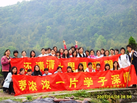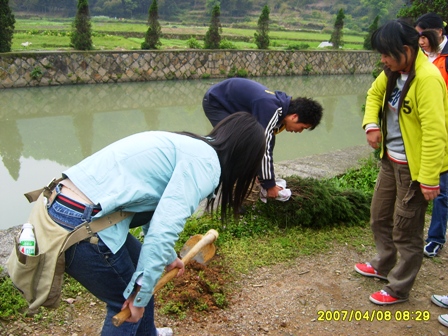 这次植树活动的主题是“拯救温瑞塘母亲河”。温瑞塘河是温州历史最悠久的河流,流经面积广,流程长。素来有温州市的“母亲河”之美称。但是近年来,过多的生活垃圾和工业废水导致河流受污染严重,一些缺少治理的河段经常是河水污浊,臭气冲天。为此,05中本3班的同学们展开讨论后决定在温瑞塘河的源头瞿溪镇开展植树活动。