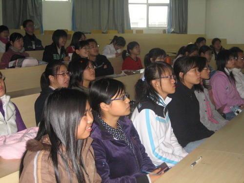 青协志愿者干部第六次培训,邀请了温州大学志愿者服务中心的主任丁一民同学与同学们进行了有关06年温大西部社会实践活动的交流。