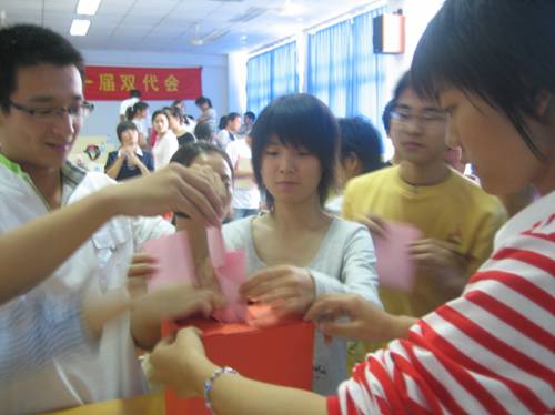 按照大会筹备委员会研究决定的有关代表名额分配和代表产生办法的要求,经过团支部、班级推选代表候选人;学院团委、学生会考察酝酿提名第一届委员会委员候选人;经过学院52名团员代表和62名学生代表进行差额选举,大会产生了温州大学球探体育