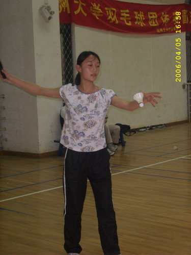 代表队和外国语学院代表队的比赛原定于15:30在一号场地开始,后因故推迟,并换到二号场地进行。继第一场男单比赛05历本的陈钢同学以压倒性的胜利旗开得胜后,04中本二的邱晔同学又以绝对优势拿下女单比赛。