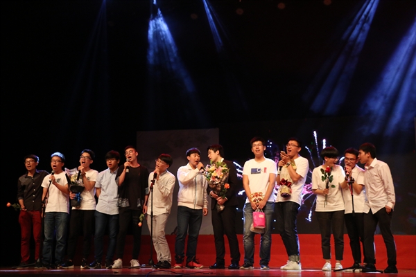 在呆萌逗趣的《大王叫我来巡山》舞蹈中,毕业生晚会正式拉开序幕。本场晚会特意邀请到了cosmos男团,劲歌热舞瞬间点燃了现场的气氛。13历本黄欢同学的一曲《阿楚姑娘》带我们相依看月亮,嗅桂花淡淡清香。接下来,两位毕业班的学长用一出相声诙谐地回忆了大学四年的酸甜苦辣,现场的观众时不时发出阵阵笑声。16广本的同学们以一段黑白配的炫酷舞蹈,为毕业的学长学姐们献上一场视觉盛宴。而15中本的同学,则以一出颠覆的情景喜剧《新甄嬛传》令观众们捧腹大笑。悠扬的小提琴、清脆的钢琴声加上翩跹的舞姿,一幕《月下独舞》让大家感受到独属于人文的才情。13广本的同学们一首改编版《奇妙能力歌》,细数这四年在广告系的点点滴滴,抒发对人文的依依不舍。在VCR视频中,再最后一次聆听,来自老师的谆谆教诲;再最后一次呼唤,人文是永远的家。最后,13中本的男生们声嘶力竭地高唱着“让所有的人,坚信我们为爱”,为本次晚会画下一个圆满的句号。