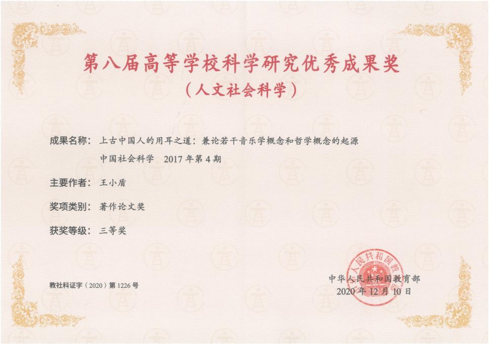成果名称:《上古中国人的用耳之道:兼论若干音乐学概念和哲学概念的起源》