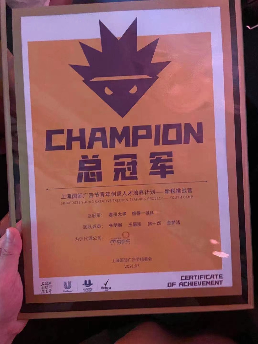 7月23日,2021上海国际广告节新锐挑战营总决赛暨颁奖典礼于上海静安瑞吉酒店举行,温州大学球探体育 广告学专业“稳得一批”代表队,从来自全球36所高校36支代表队中脱颖而出,荣获全国总冠军!