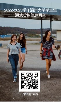 根据国家开发银行生源地信用助学贷款手续办理的要求,学生在生源地办理完毕信用助学贷款后,需要高校在限定时间内进行网上回执录入,请办理生源地贷款的新老生,务必在9月11日24:00前在网上完成《2022-2023学年温州大学学生生源地贷款信息调查》的填写,二维码如下: