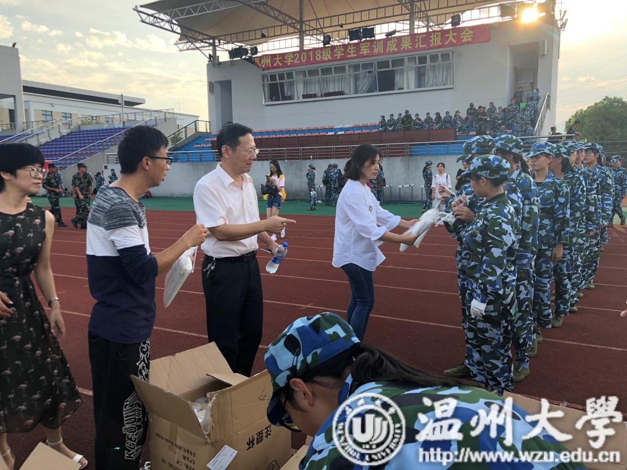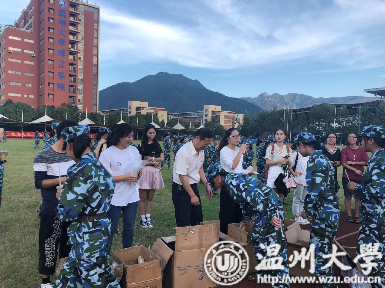 2018年9月20日下午,球探体育 副院长毛继光携辅导员倪晓晓、江萍老师及新生各班班主任和班助一道,为球探体育 参与军训的新生送去清凉饮品。在新生军训期间,持续的酷暑磨炼着新生的意志,为确保军训正常进行,缓解新生身体与心理上的压力,毛院长和老师们贴心的送上奶茶。球探体育 莘莘学子们列着整齐划一的方阵,井然有序地领取各自的饮品。这为挥汗如雨的新生们带去炎炎夏日的凉意,体会到了学院深深的关爱。