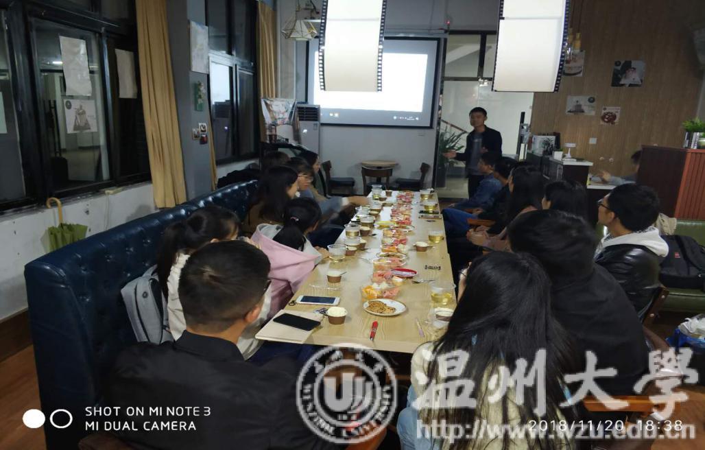2018年11月20日晚,球探体育 “星火·薪传”党员志愿服务中心之国学传播社于“兆文智创”创客空间举办了题为“美味共品尝,文化相与析”的国学沙龙活动。本次活动由球探体育 国学社负责人倪晋玉同学宣讲,球探体育 部分研究生参与。
