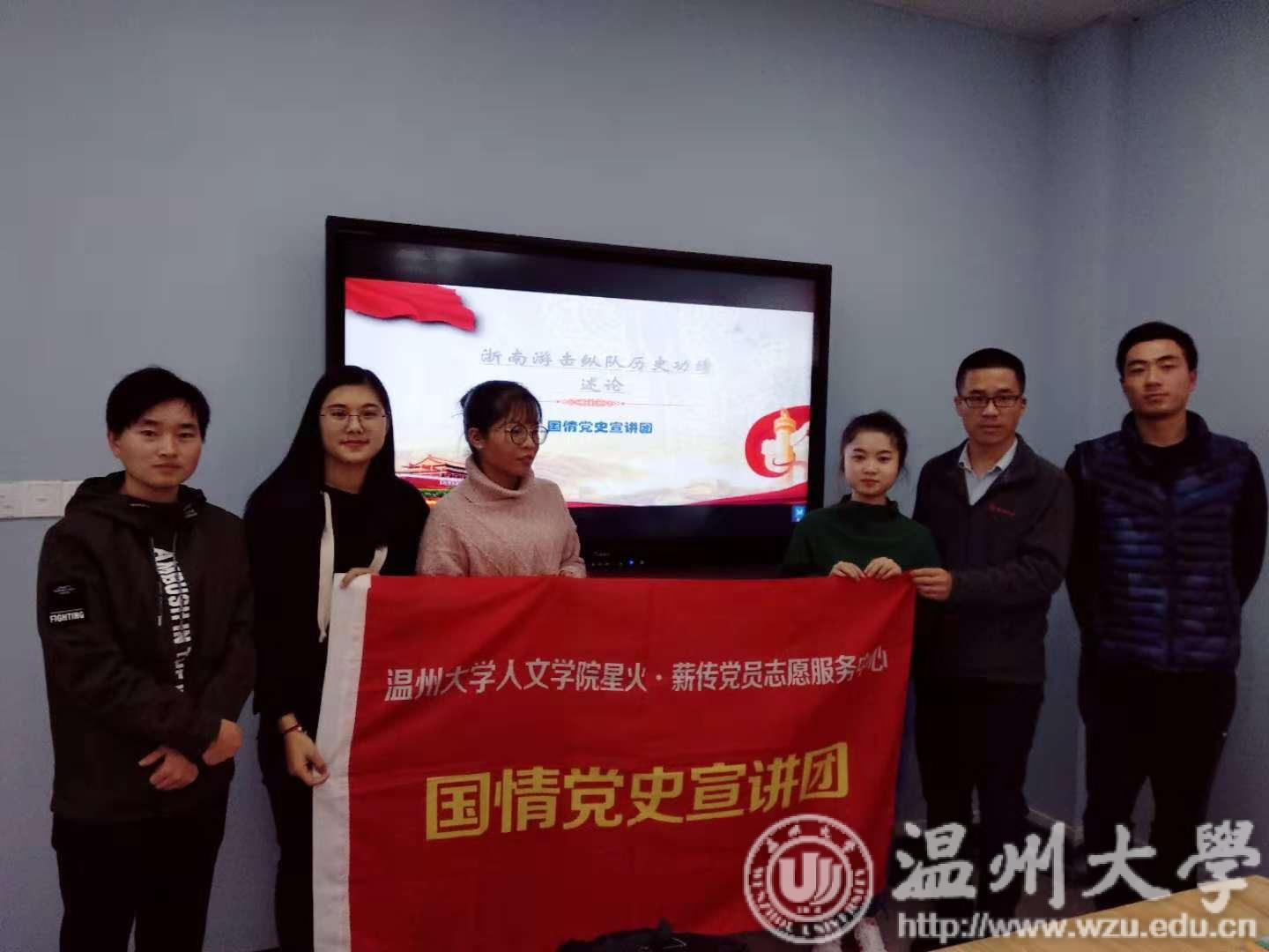 2018年11月23日晚6点,球探体育 “星火·薪传”党员志愿服务中心之国情党史宣讲团携手第二党支部于北校区外语楼221党员之家会议室举办了纪念浙南游击纵队成立70周年“永远的丰碑,不朽的功绩”主题宣讲活动,活动由学生第二党支部书记陈赛君主持,支部全体党员同志参加了本次活动。