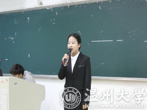 培训伊始,温州大学学生会公关部杨佳宁为大家介绍着装礼仪。从男性和女性的服装要求,即着装选择,颜色搭配和注意事项等说起,进而讲述了着装的三个基本原则:时间、场地、地点原则。现场邀请了三位同学来学习和体验如何打好领带。紧接着,是公关部俞婷讲解迎宾礼仪。她从迎宾的准备工作和不同的接待规格来教大家怎样做好接待工作。此外,还介绍了男女接待的衣着穿戴、站姿、坐姿、行姿以及引领姿势的动作。随后,是公关部的陈晓东为大家介绍体态姿势礼仪。分别是站姿、坐姿、蹲姿以及握手礼。其中,具体阐述了握手礼的起源、象征意义以及注意事项。