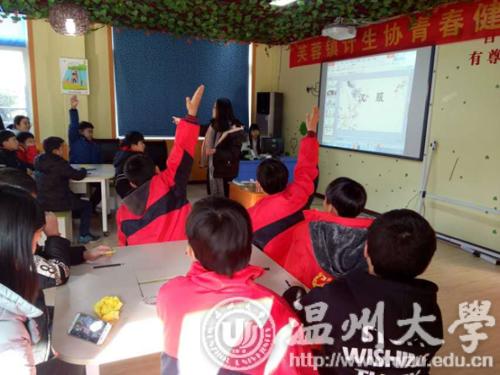 2018年1月10日,由温州大学人文思源青年志愿者协会组织开展的新青年下乡之暖冬行动于乐清市芙蓉镇雁湖九年一贯制小学如约展开。本次活动以“云中寄锦信,民俗寻文脉”为主题,一方面,旨在让小朋友们认识丰厚博大的中华文化,吸收民族文化智慧,培养热爱祖国语言文字情感;另一方面,也是为了全面提高大学生的综合素质和实践能力,促进大学生社会责任感的形成。在志愿者们的积极参与下,本次活动取得圆满成功,志愿者们与小朋友从这次活动中都获益匪浅。