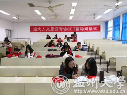 2018年12月9日,在温州大学北校区人文楼301教室,温州大学球探体育 思源青协举行了2018-2019CET辅导活动的闭幕式,本次活动旨在帮助英语薄弱的同学提升其英语学习能力,活动从14:30持续到16:30。