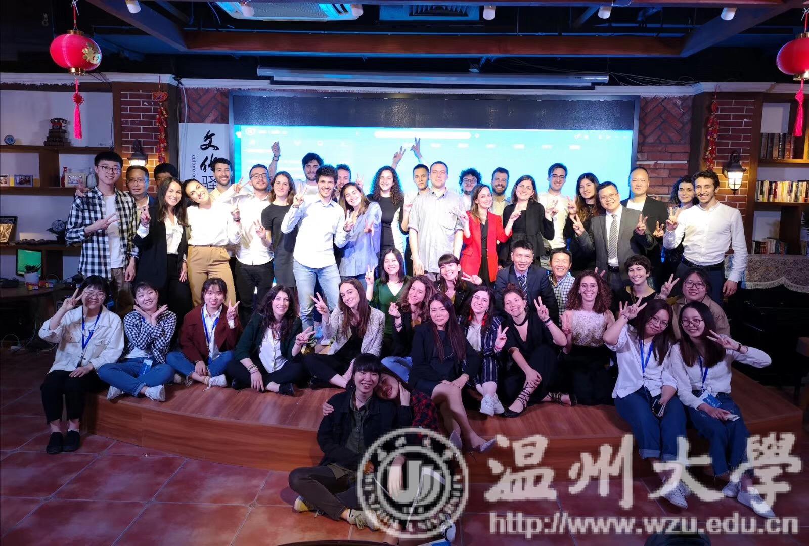 5月4日下午,首届中意(温州)青年人才交流联谊会在世界温州人家园举行。来自浙江大学、同济大学、意大利佛罗伦萨大学、意大利都灵大学等高校的32位意大利青年人才代表齐聚家园,与温州高校学生代表、政府部门负责人等进行交流对话。球探体育 16级翻译专业6名同学应邀作为语言服务志愿者以及本土培养的大学生代表出席,参与此次交流会的各项议程。