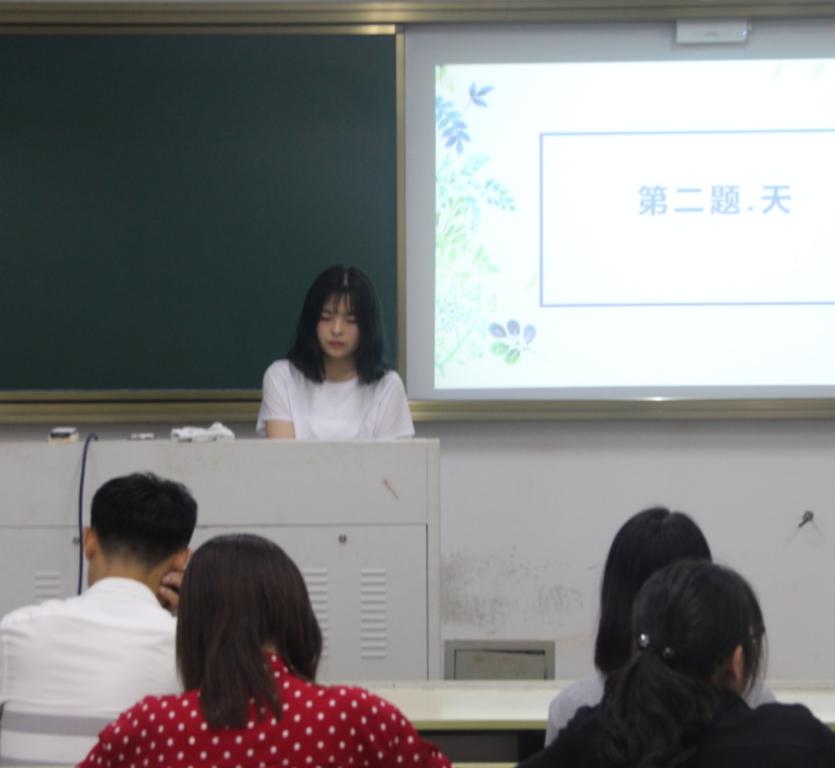 腹有诗书气自华,最是书香能致远。2019年5月17日晚18:30,温州大学第三届研究生“罗山情‧诗歌节”初赛在北校区人文楼成功举办。本次比赛在人文楼三个教室同时进行,分别由麻露云、王美霖和赵丽娜三位同学主持,来自各个学院的同学积极参加。