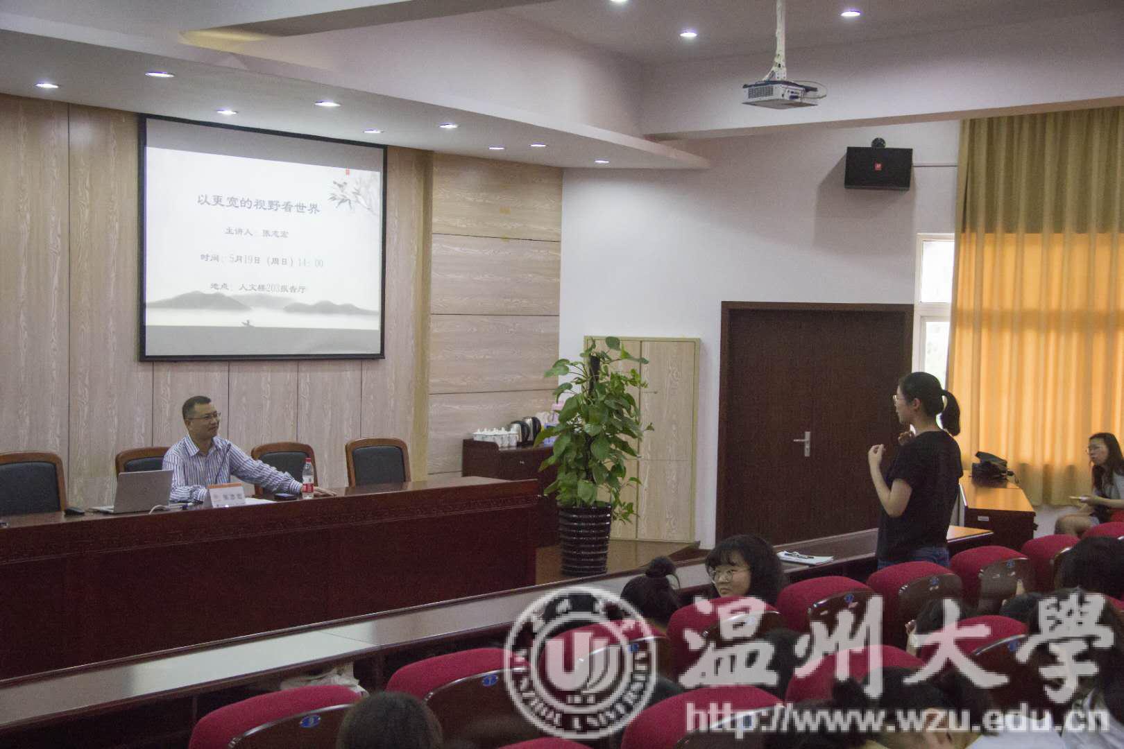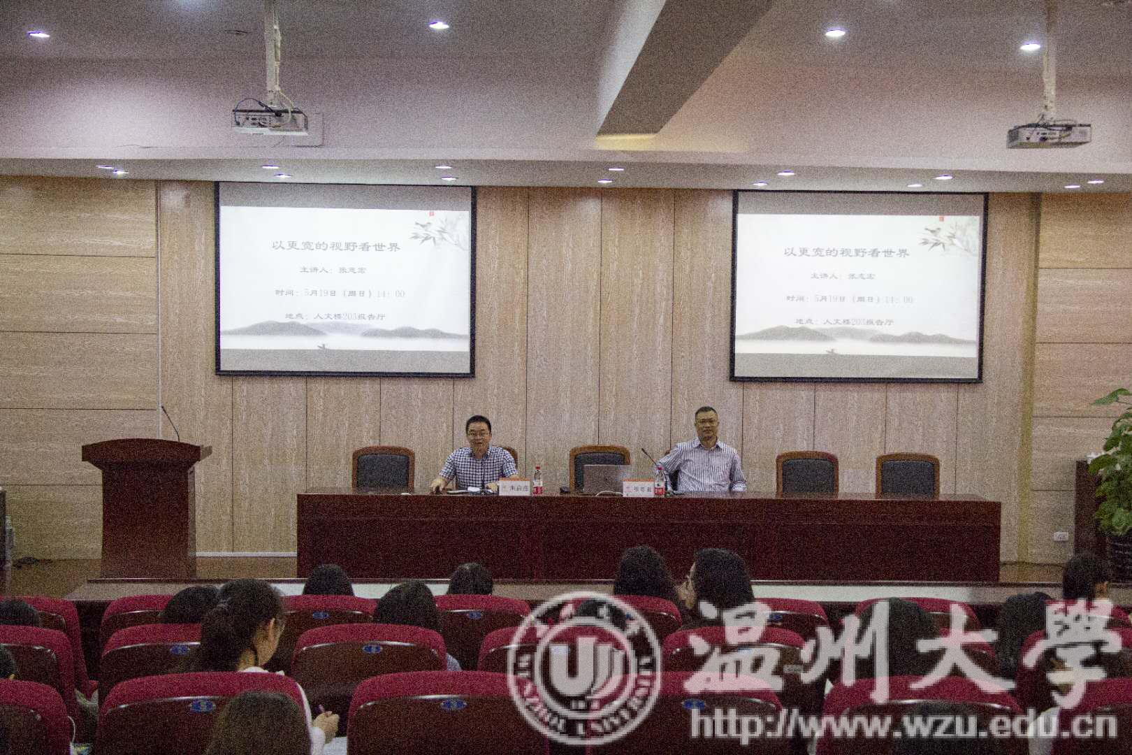 五月夏以半,正值校庆佳节。2019年5月19日下午两点,人文楼203报告厅迎来了球探体育 的优秀校友——张志宏。张志宏现任温州市体育局党组书记,我校兼职教授。出席本次活动由球探体育 党委副书记朱启鑫老师主持。