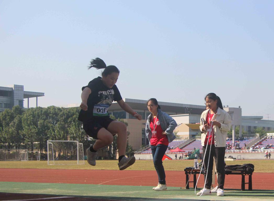 100米短跑比赛的健儿们首先上场,他们拼尽全力奔跑,汗水浸透凉薄衣衫,但他们的目光紧锁终点,同学们在一旁摇旗呐喊,加油助威。紧接着的沙坑跳远、长跑比赛项目将现场的气氛带向了一波又一波的高潮。下午的师生趣味运动项目,师生同乐,跳大绳、三人四足、往返运球的场地时不时传来老师和同学们欢乐的呼声。拔河比赛受到全场瞩目,双方队员都卯足了劲儿用力拉绳,都想为自己的班级增添荣誉。