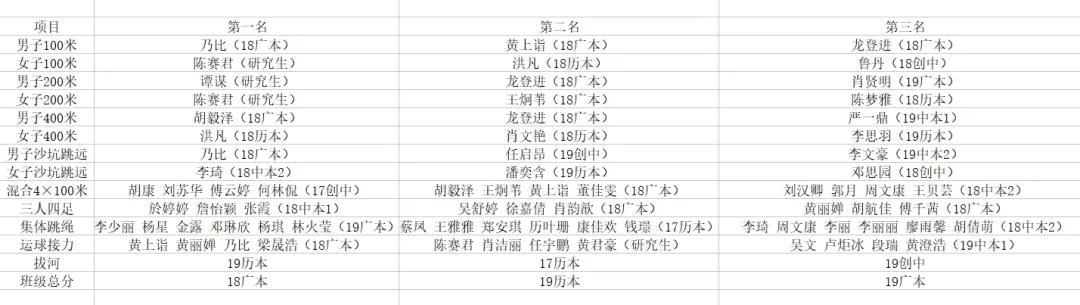 运动会最终成绩公示如下: