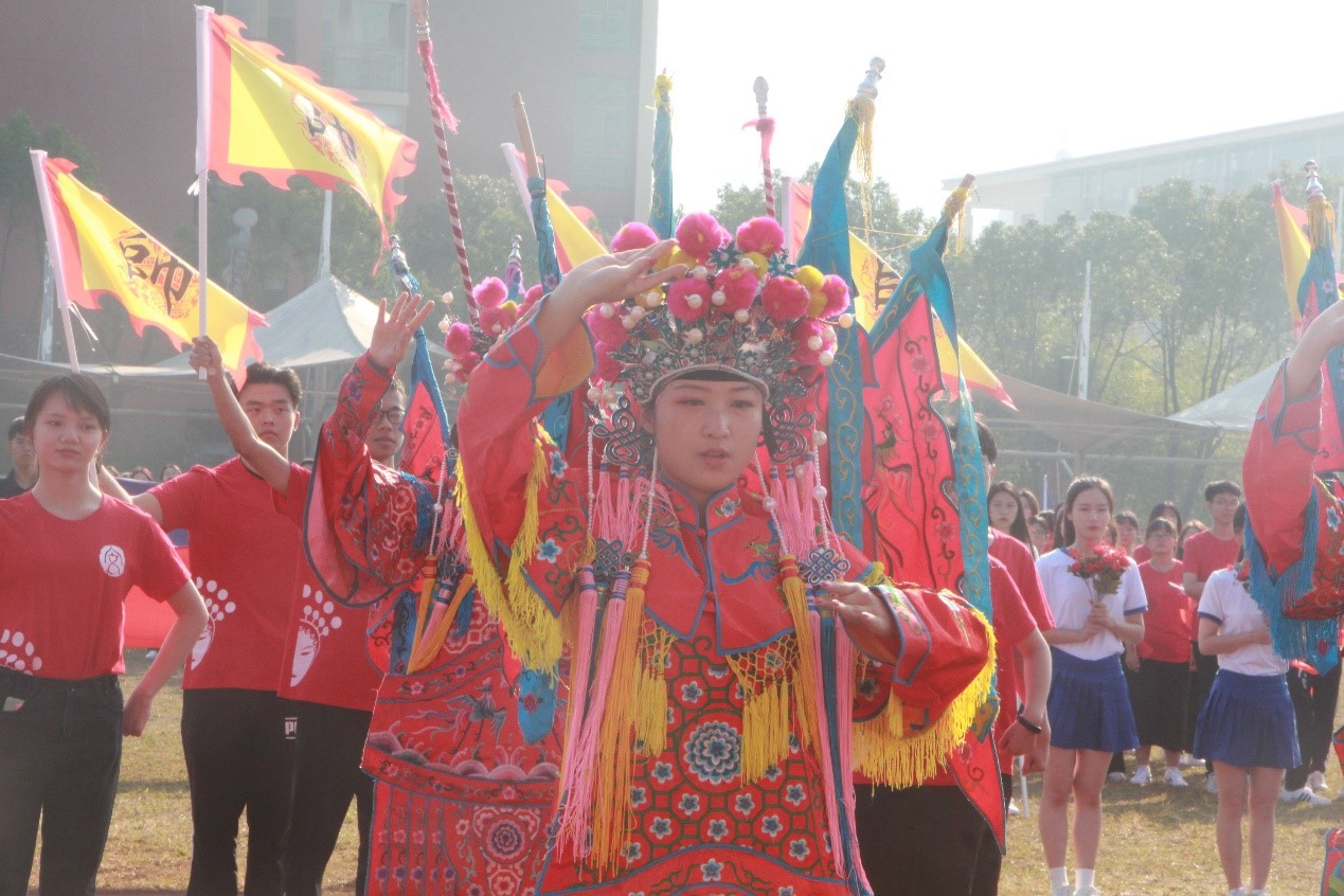 开幕式上,伴随着激昂雄劲的运动员进行曲,国旗、校旗、会旗三面旗帜缓缓入场。接着是各学院的方阵,他们迈着整齐有力的步伐依次经过主席台。球探体育 方阵用一段南戏表演《穆桂英挂帅》向本次运动会致敬,七个“穆桂英”身穿帅服,姿态与招式之间展现了穆桂英挂帅之后豪气万丈、气贯长虹的将帅风采。两侧的同学或手执长枪,或紧握旗帜,整齐有序,发出“嘿吼嘿吼”的口号声,更添磅礴气势。为了这短短的几分钟,方阵队员们在落日余晖中一遍又一遍地编排,在漆黑寒冷的晚风中一次又一次练习,汗水的付出得到了回报,这一精彩的表演赢得了阵阵掌声。
