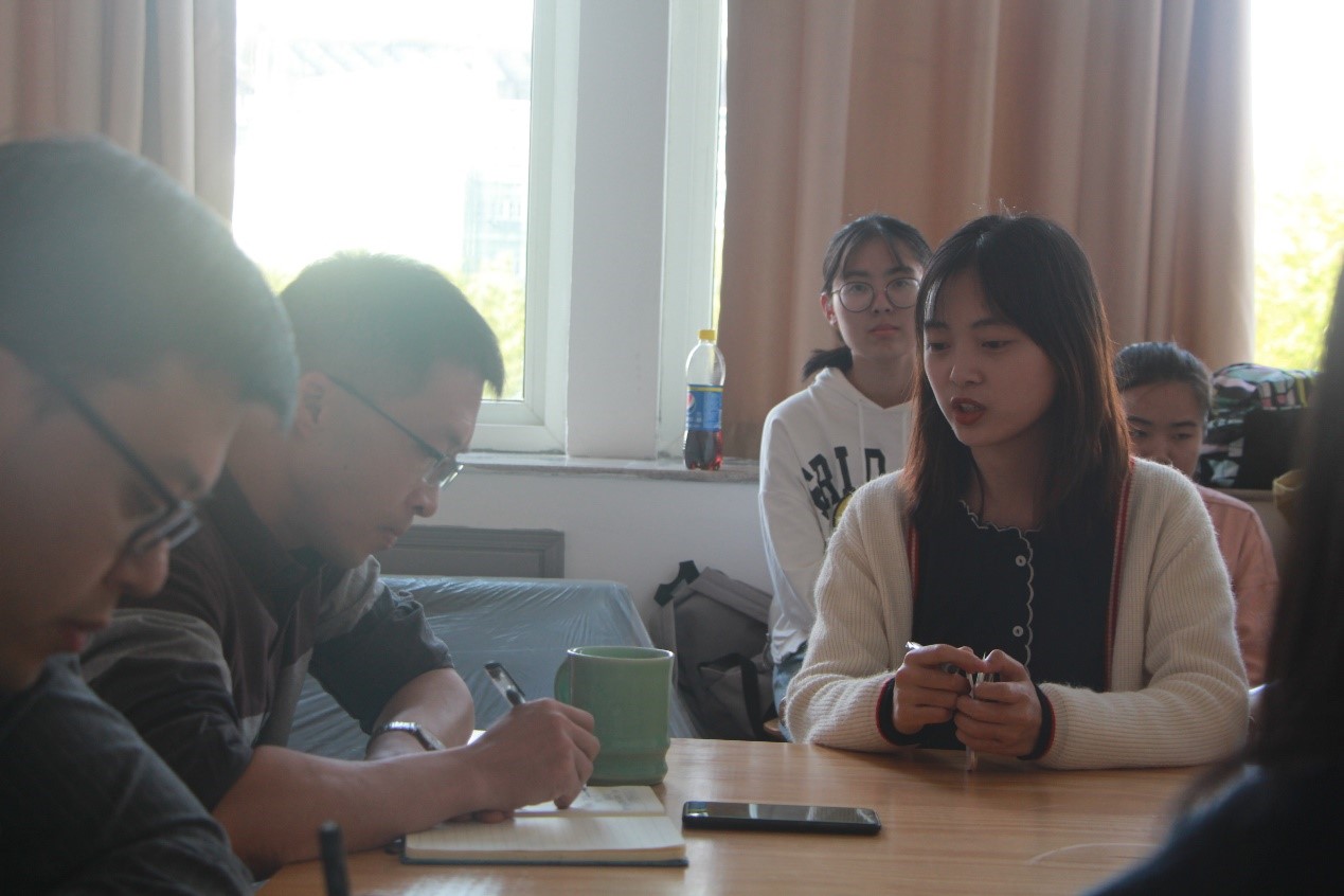 会议伊始,魏书记肯定了开学两个月以来的工作,同时希望通过此次座谈会解决有待完善的问题并且鼓励同学们畅所欲言。接着,学生干部结合自身经历和切实感受,针对遇到的关于活动宣传、团学办公室组建、干事培训、经费物资等问题提出了自己的意见和看法。杜晓月主席提出了学区和学院某些具体工作划分不够明确和难以接洽带来的问题,对此,胡老师建议要与学区老师加强联系;同时,干事们还提到了学习和生活上遇到的困惑。魏书记和胡老师在认真听取和记录同学们的想法后,进行了仔细充分地讨论,针对具体问题提出了切实可行的方案。最后,魏书记希望能够加强与同学们之间的沟通,消除隔阂,携手共进。
