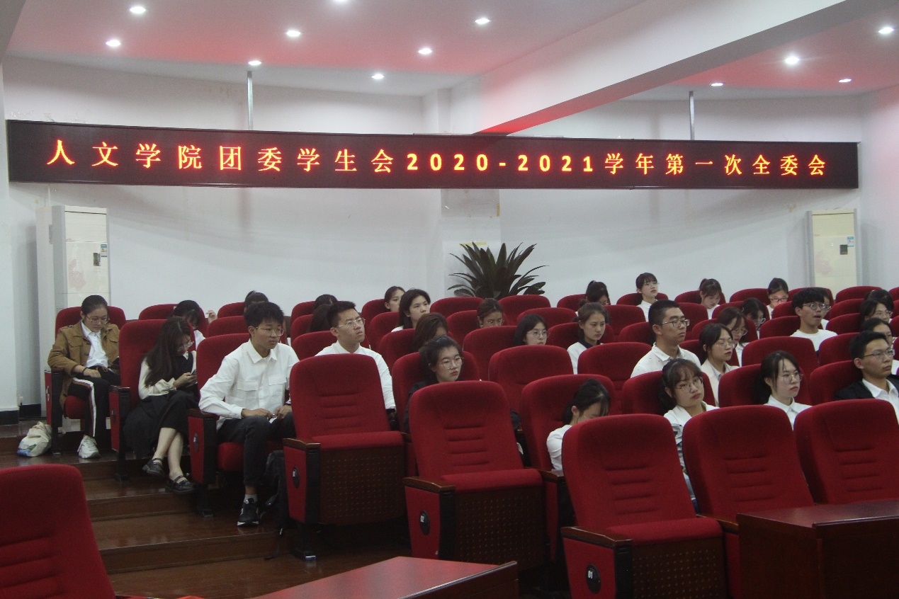 10月21日下午,球探体育 团委·学生会2020-2021学年第一学期第一次全体委员会召开在人文楼203报告厅举行。院党委副书记魏一、学工办辅导员胡震鹏张丹妮、周怡谷,球探体育 团学新一届主席团以及全体团委·学生会成员出席会议。