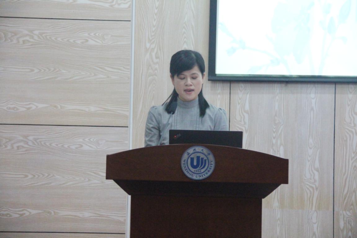 接下来,在热烈的掌声中,赞助商代表杨阿玲女士致辞。她对此次文学奖的启动表示热烈的祝贺。她表示,这次文学奖的设立将进一步激发和推动温州大学文学爱好者的创作精神,为建党一百周年献礼。