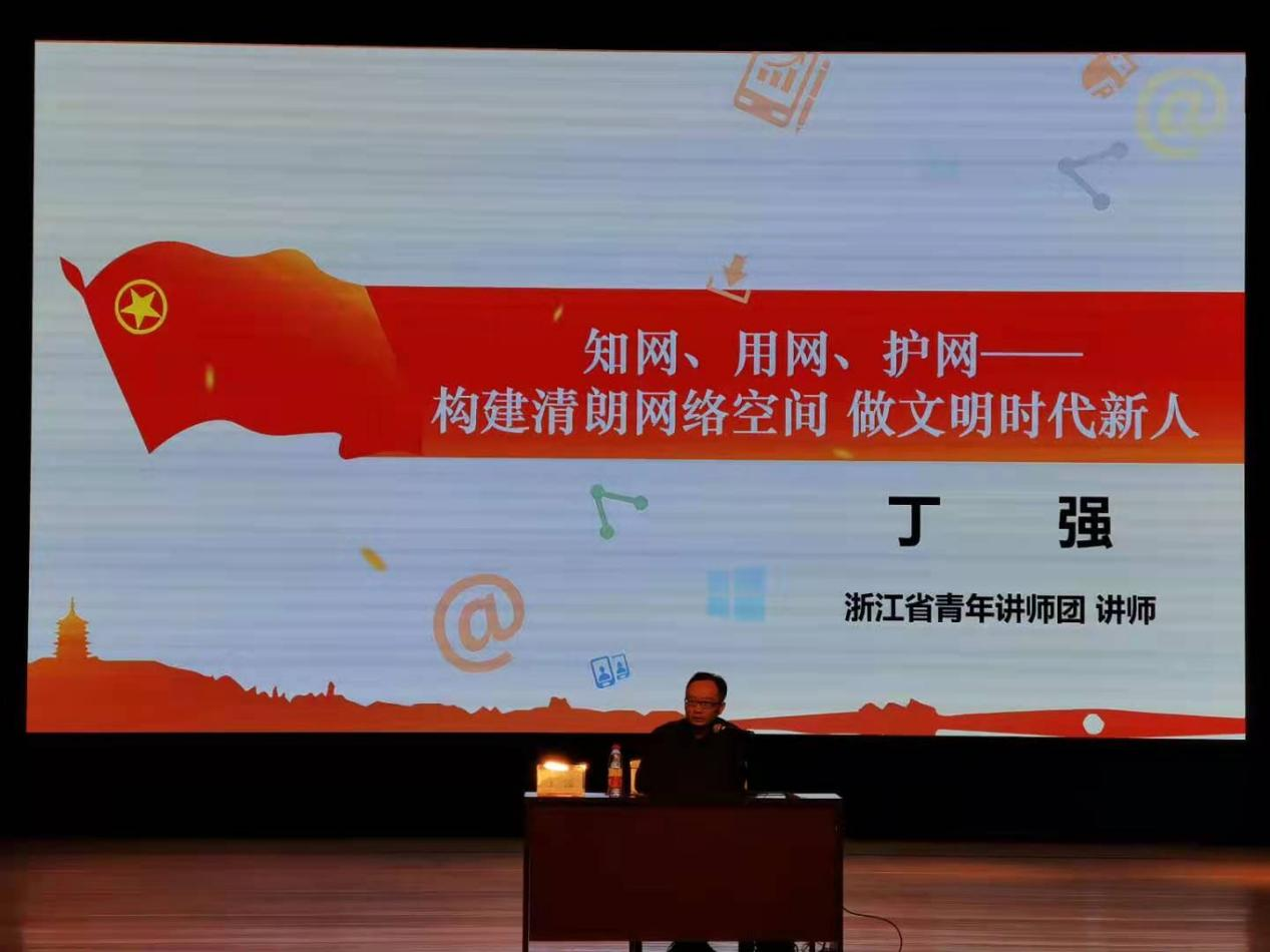 第一讲:“清朗网络空间”,由温州大学校团委副书记、浙江省青年讲师团讲师丁强老师主讲。