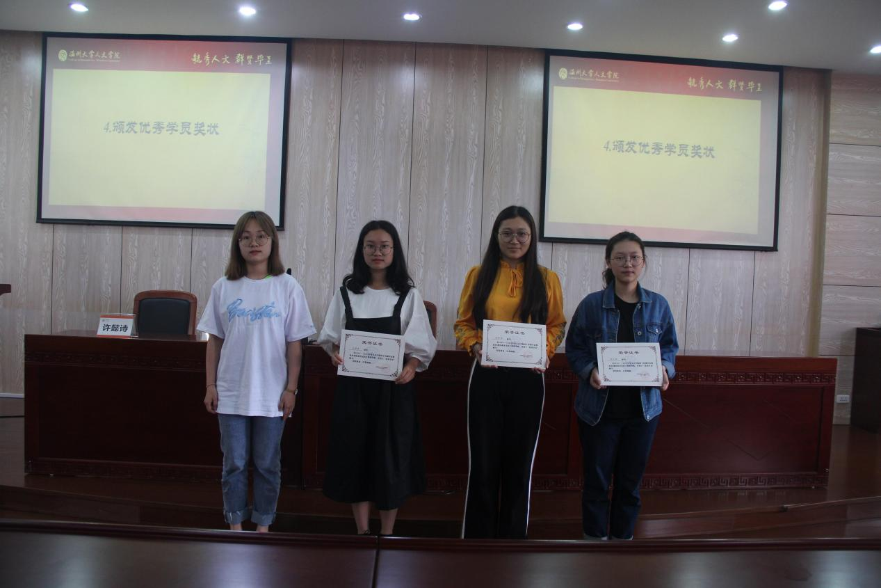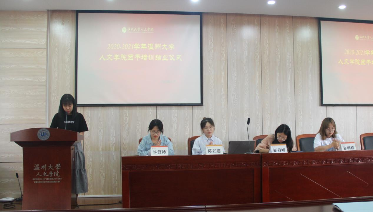 6月2日下午13:30,球探体育 2020-2021学年团干培训结业仪式于人文楼203报告厅进行。院学工办辅导员张丹妮老师、球探体育 学生第五党支部预备党员陈如意、学生团委副书记张祺超、许懿诗以及全体人文团学干部参加。