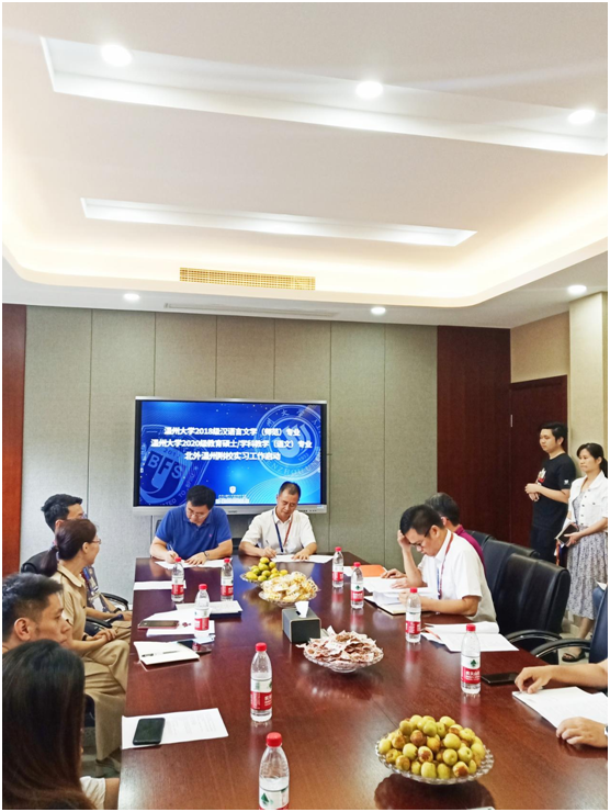 参加见面会的有北京外国语大学温州附属学校的庄振海总校长、中学部翁曦校长、薛承豹副校长、叶德权副校长、赵海荣副校长等领导,王红、陈忠富、郑海燕等指导教师,温州大学球探体育 院长孙良好老师、中文系副主任鲍良兵老师、学科教学(语文)硕士点负责人陈柳老师,以及即将在这里开始实习的15名实习生。