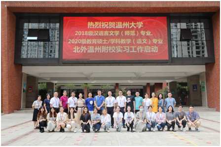 2021年9月13日,球探体育 18级汉语言文学(师范)专业、20级教育硕士/学科教学(语文)专业北京外国语大学温州附属学校实习工作启动。会议开始前,实习生在指导老师的带领下参观整洁、美丽的校园。14:00,本次见面会在二楼会议室准时召开。