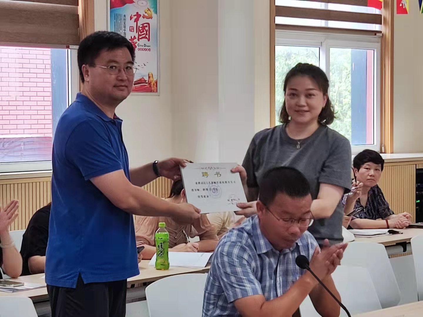 见面会由温州二十一中研训处张文静主任主持,会议共分成五项议程。首先,基础学部主任曾晓静老师宣读了实习指导老师名单,指导老师与实习生进行了师徒结对,随后孙良好院长向实习指导老师送上了聘书。接着,金森林副校长通过自己的亲身经历,分享了大学时期参加教育实习的所思所感,勉励实习生们要抓住机会,不断磨砺自己,并表达了对实习生们的热切期待。王贝芸同学作为实习生代表发言,以“纸上得来终觉浅,绝知此事要躬行”的决心和严格遵守各项纪律的承诺展现了实习生们的端正态度。随后,林甲景副校长就如何“素读”文本、以教材为中心、认真备课、用写作保持语感和转变角色等方面,向实习生们讲述了成为一名优秀语文教师的路径。随后的发言中,孙良好院长首先就本次实习向温州二十一中学的各位领导和实习指导师表达了衷心的感谢,对实习生需要适应双重身份以及转变提出了要求和希望,并预祝实习生们能够早日找到当老师的乐趣,边学边做,保持动力。最后,曾晓静老师补充了各年级段课程时间安排,对课表上未提及的时间细则进行了具体的讲解。