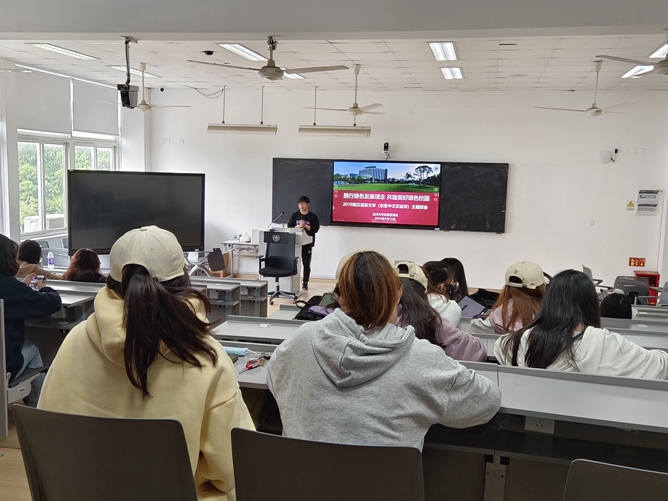 万物各得其何以生,各得其养以成。大自然是包括人在内一切生物的摇篮,是人类赖以生存发展的基本条件,我们应当尊重自然、顺应自然、保护自然,实现人与自然和谐共生。进行绿色学校建设,有利于贯彻落实生态文明建设理念,增强学生的责任意识和保护环境意识。作为新时代的青年和温州大学的学生,我们应当以身作则,从点滴小事做起,节约用电用水、坚持绿色出行,关注绿色生活,提高生态文明素养,为温州大学的绿色校园建设贡献自己的一份力量。——20历史1郑可盈