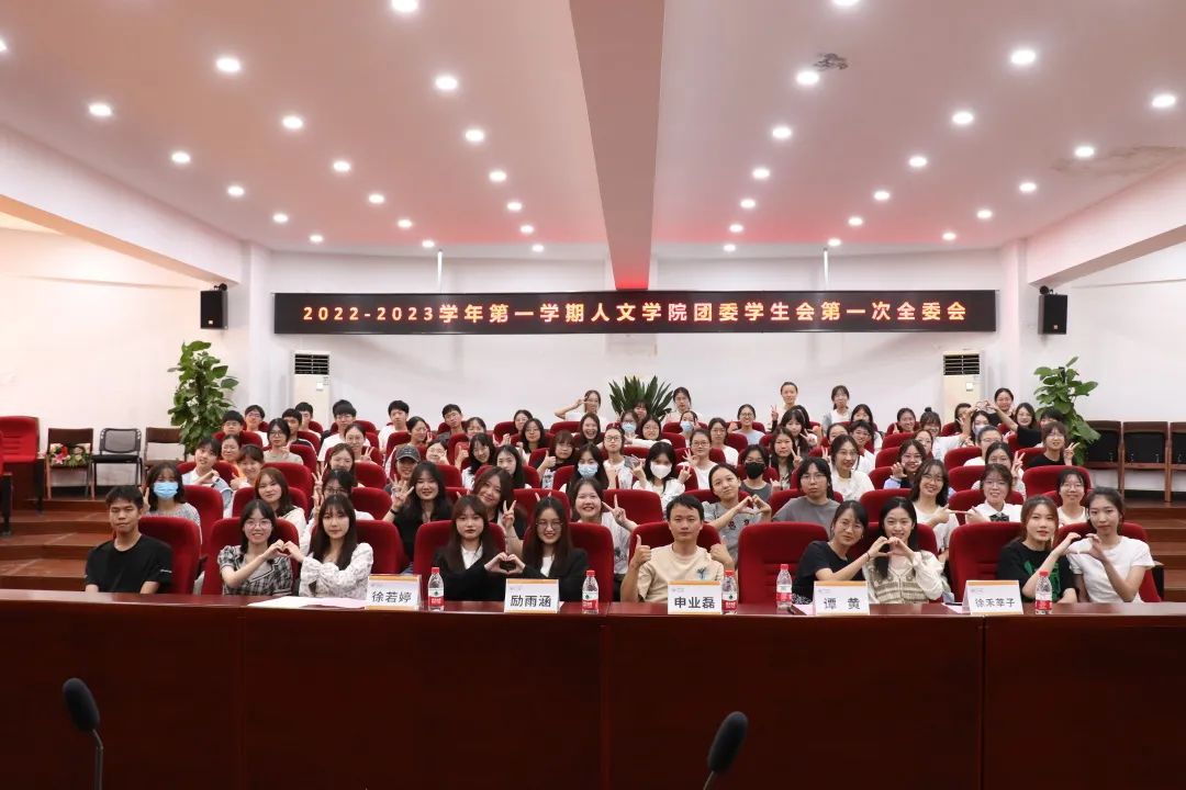 会议伊始,全体人员在庄严肃穆的伴奏声中起立齐唱中国共产主义青年团团歌。而后,人文团学各部门部长上台介绍部门职能、汇报本学期工作计划并进行新干事介绍。