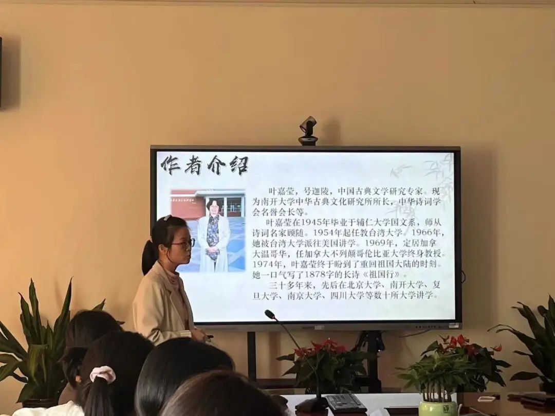董心怡同学为大家分享了叶嘉莹先生的作品《迦陵谈诗》。首先董心怡同学对叶嘉莹先生的师承、求学任教的经历及学术成就进行了介绍。随后,董心怡同学分析了杜甫的作品《赠李白》,以此体现叶嘉莹先生对李杜二人的看法。最后,董心怡同学将李杜人生经历进行对比,介绍了叶嘉莹先生的观点。叶嘉莹先生认为“夫杜甫与李白之性格,固并不属于同一类型,然而其为天才同,其为落拓同,其深情伟愿亦复相似,只是太白恣纵,杜甫坚实......”