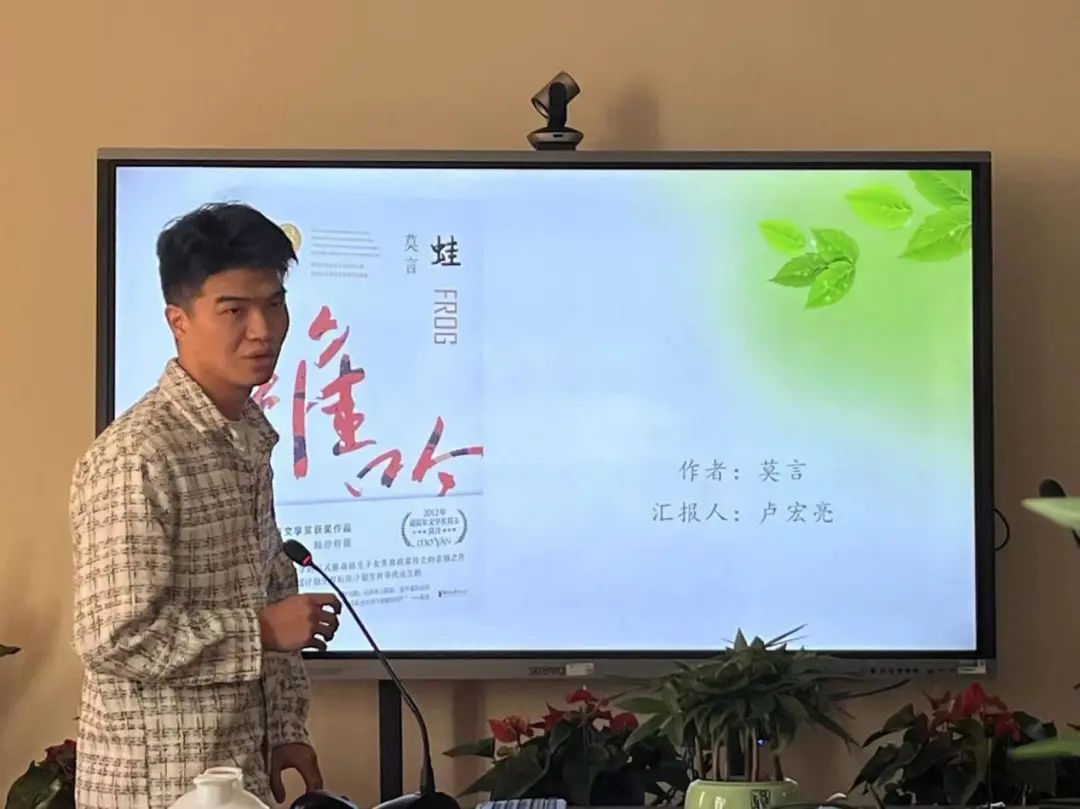 卢宏亮同学为大家推荐的是中国作家莫言的长篇小说《蛙》。首先卢宏亮同学简单介绍推荐的书籍。《蛙》是以新中国近60年的农村生育史为背景的小说。接着他将小说内容分成四个部分来介绍。通过这四个部分讲述了从事妇产科工作50多年的乡村女医生姑姑的人生经历,说明了姑姑形象转变的原因,呈现出一个善恶并存、刚柔兼备的农村妇科医生的形象。最后,卢宏亮同学以“王仁美之死”这个片段引申出对生命和人性的思考。