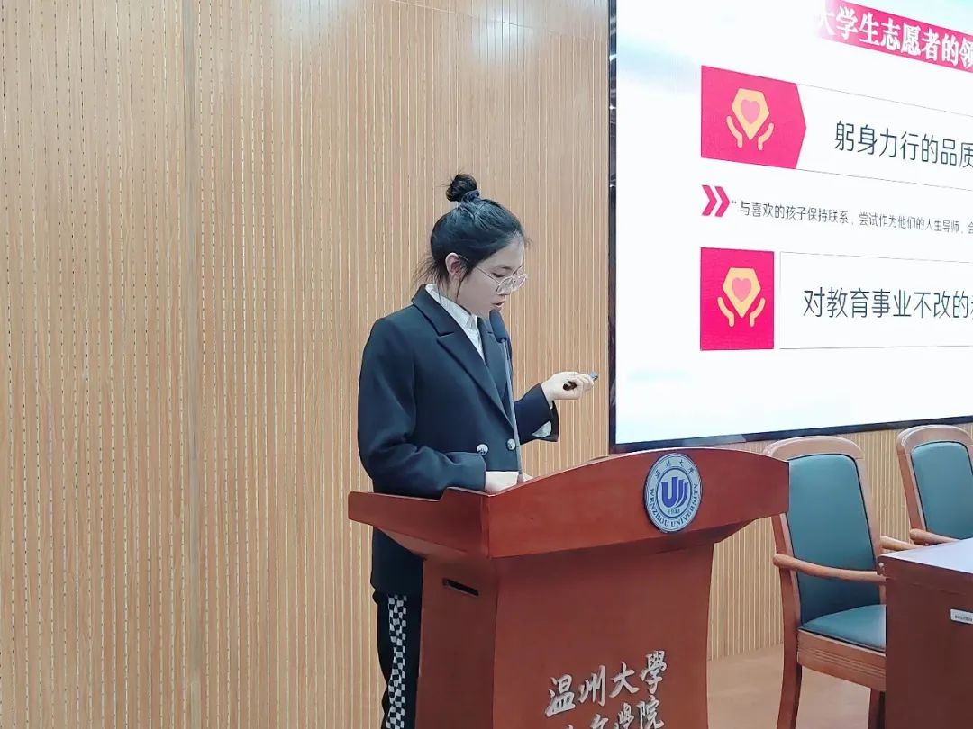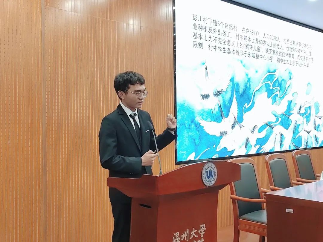 教育,人生之大事,国家之大事,人类之大事。教育,关系着人的发展,国家与民族的未来,人类的进步。王灿同学从身边的优秀党员出发,选取了法学院徐旭东老师的例子,围绕着他为温州侨界留守儿童之教育不断奋斗的事迹展开了题为《春风沐雨,以文化人》的宣讲。