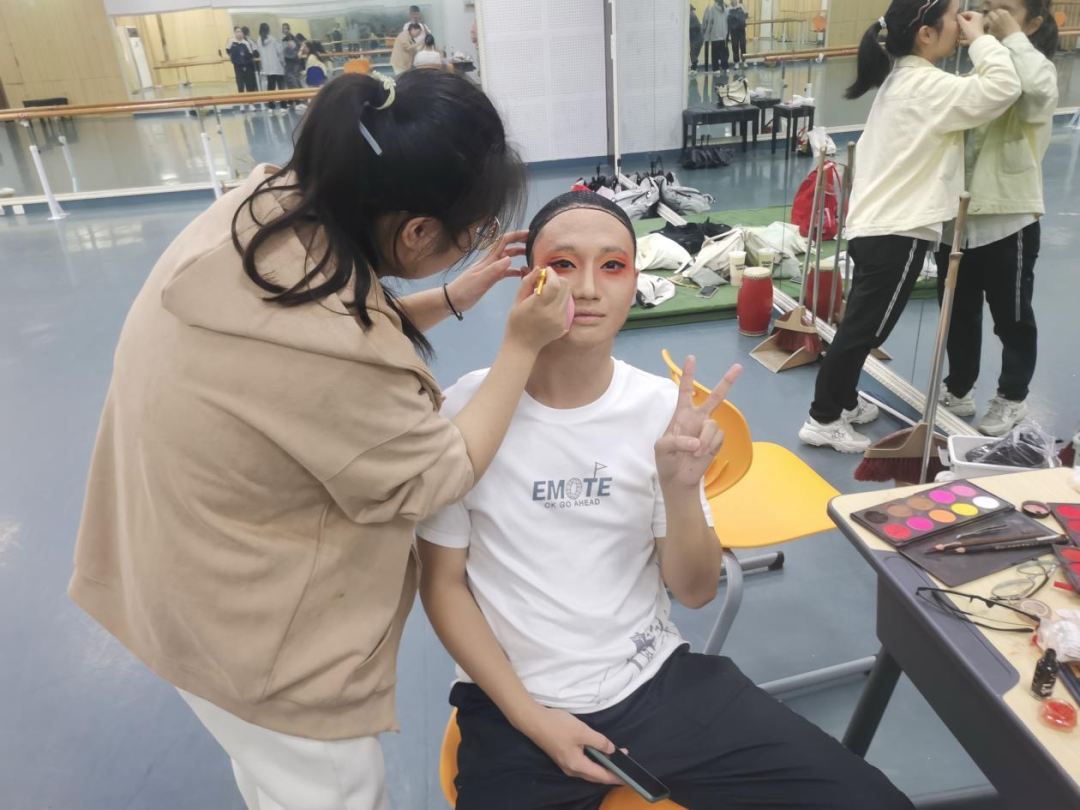 演出前一天,参与演出的社员就已经开始走台彩排了。大家认真琢磨舞台走位,互相探讨唱腔、动作,力求完美。
