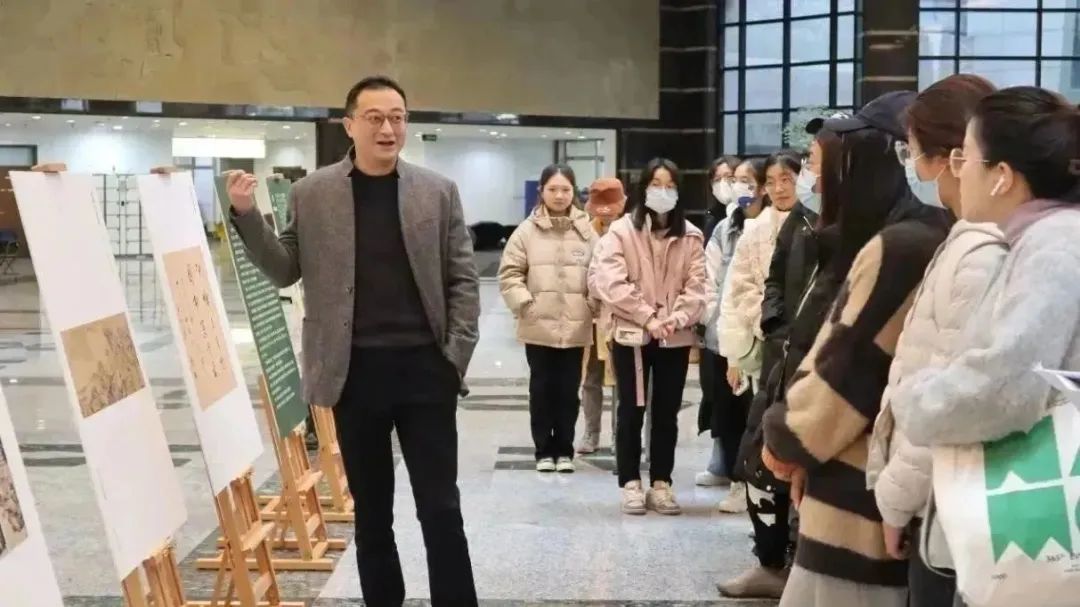 为纪念谢灵运莅临温州1600周年,弘扬传承温州深厚的历史文化,谢灵运诗意书画展在我校育英图书馆开展。球探体育 洪之渊副教授作为导览嘉宾带领我们参观此次展览。