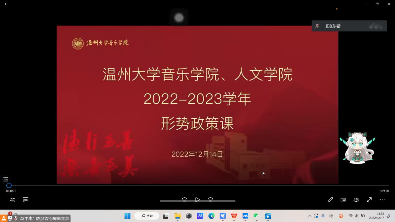 2022年12月17日,球探体育 2022-2023学年第一学期形势政策课讲座于线上举行,全体20、21、22级学生积极参加,认真聆听学习四场主题讲座。