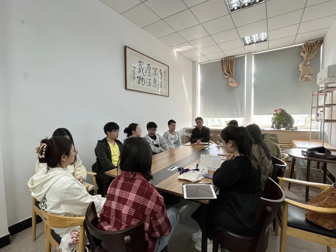 申业磊老师讲话。申老师首先肯定了校友工作服务中心全体成员过去一学期的工作,并提出三点要求:第一,明确身份,积极工作。校服中心成员的身份较为特殊,既是学生干部,也是校友联络员。各成员需要站在更高的位置上认识自己的工作,认真耐心地服务好校友,做到让校友满意。第二,认真工作,不怕麻烦。采访校友或许会遇到困难,但不可畏首畏尾、怕麻烦,要努力克服困难,只有积极推进才会有成长。第三,互相学习,提升自我。校服中心的大家庭里有很多优秀的同学,互相之间的学习沟通也能够帮助个人能力的提升。此外,校友采访工作接触到的校友也是每个人学习的榜样,各成员可以从他们的经历中汲取养分积极成长。