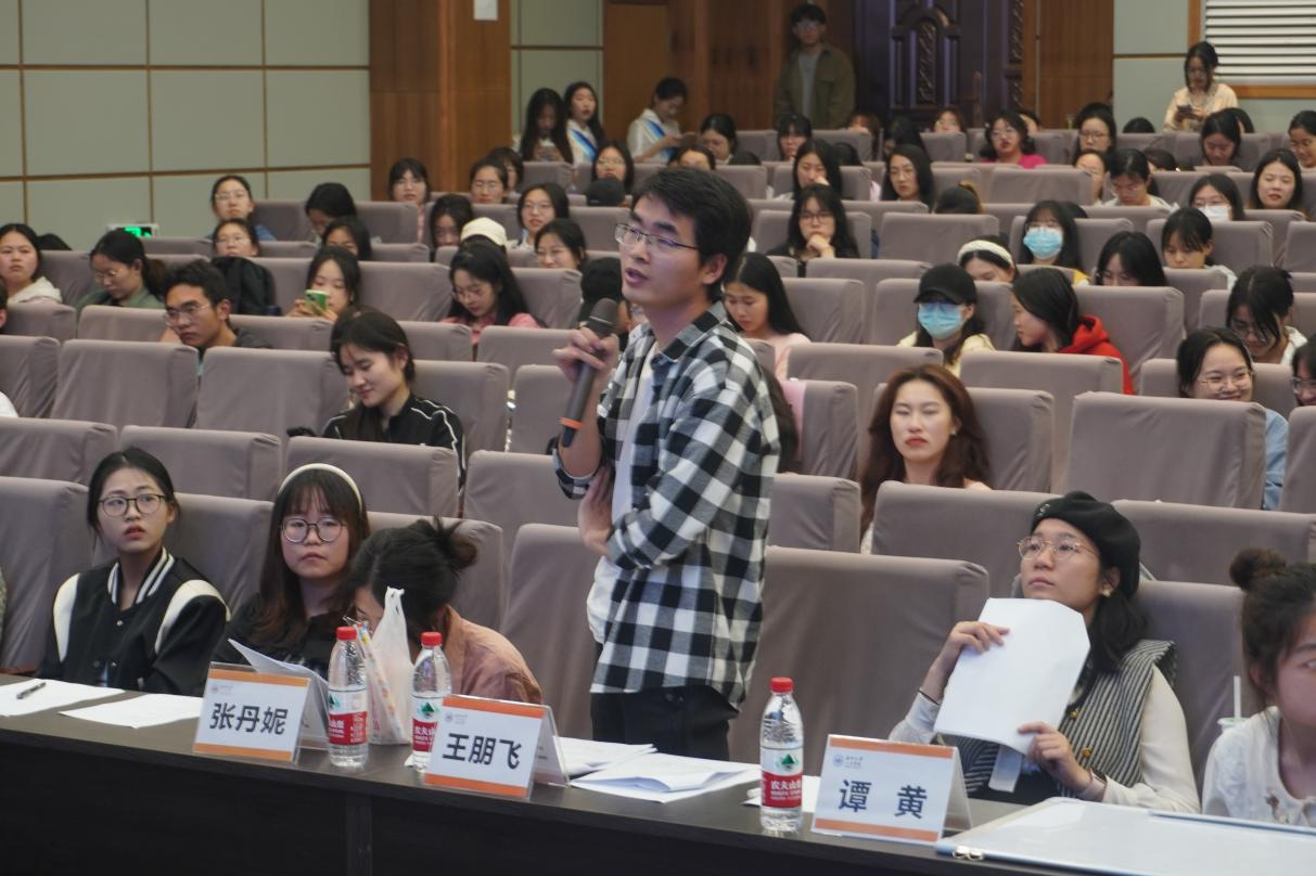 “群雄逐鹿”中,参赛选手根据初赛得分情况分别组成五人团、十人团。五人团选手只能选择一套题,十人团选手作答所有题,两团各晋级两人进入第二轮角逐。在答题过程中,选手们或展露“我是清都山水郎,天教分付与疏狂”的自信旷达之姿,或尽显“吾胸有成竹,明月皆入怀”的运筹帷幄之风,体现出深厚的文学素养。在点评环节中,王朋飞老师分别对诗词格律及词牌名作了专业阐释,令同学们受益匪浅。