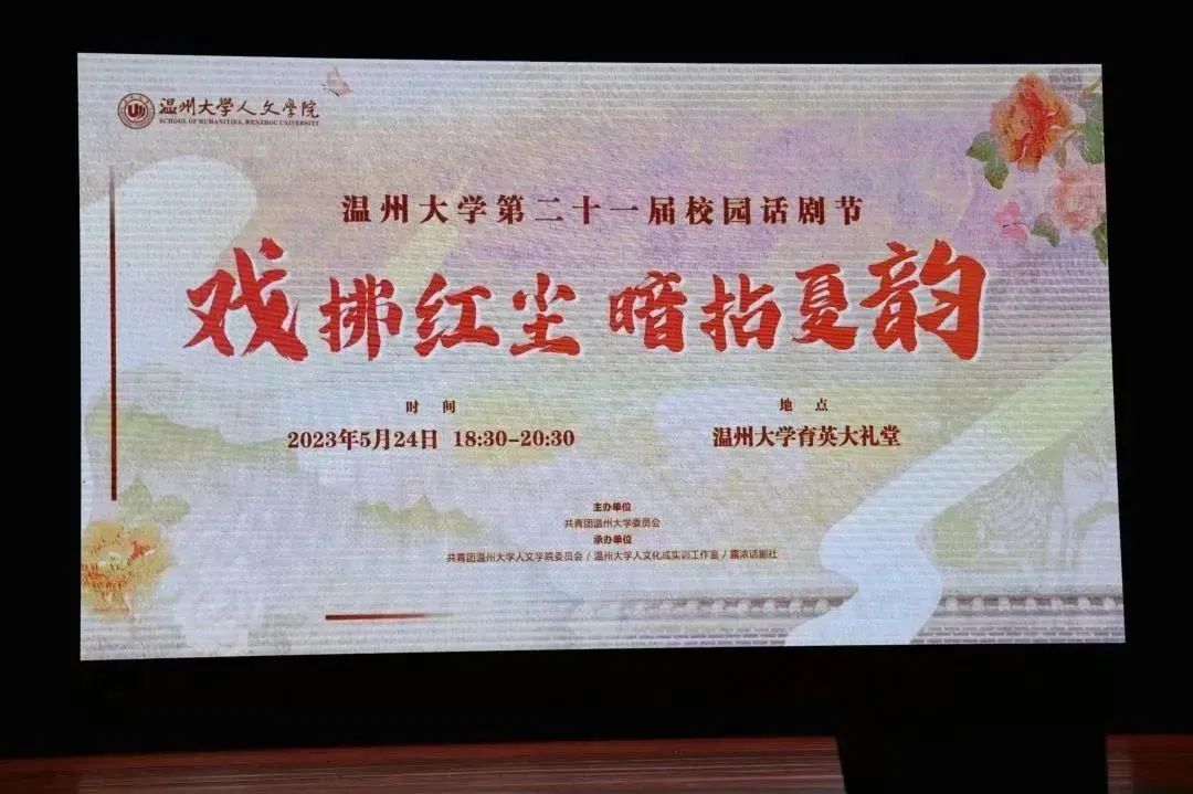 5月24日18:30,“戏拂红尘,暗拈夏韵”温州大学第二十一届校园话剧节于育英大礼堂圆满落幕。该活动由共青团温州大学委员会主办,由共青团温州大学球探体育 委员会、温州大学人文化成实训工作室、露浓话剧社承办。本次话剧节上演《狂飙》话剧大戏,现场500余人共同欣赏了这场视听盛宴。