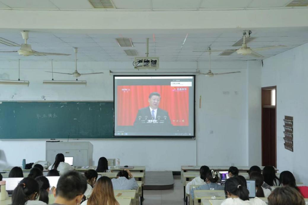 6月10日,球探体育 本学期形势政策课于育英大礼堂、北校信息厅同步开展,全体20-22级学生积极参加、认真聆听学习。