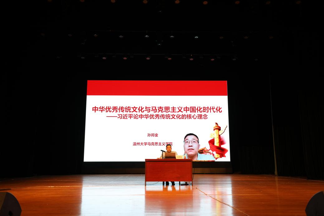 温州大学马克思主义学院副院长孙邦金教授从二十大精神及传统文化的相关论述出发,讲述了中华文明的突出特性、精神标识和文化精髓,并基于新时代中国特色社会主义文化发展道路具体阐释了中华优秀传统文化与马克思主义基本原理相结合的时代路径,为同学们解构了中国式现代化的文化形态。他表示,身为新时代的新青年,我们既要坚定文化自信,又要秉持开放态度,更要坚持守正创新;担青年使命,承文化底蕴,在历史的新起点赓续中国文脉,谱写当代华章。