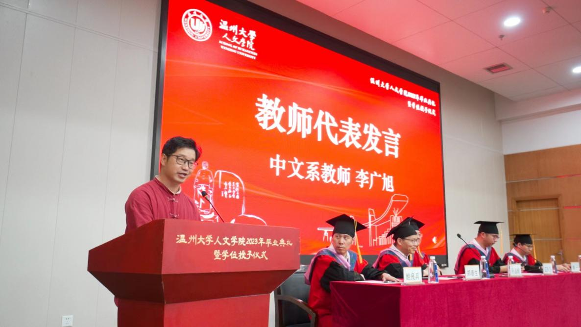 暮去朝来,光阴荏苒。6月20日上午9:30,温州大学球探体育 2023年毕业典礼暨学位授予仪式于北校信息楼报告厅顺利举行。院长孙良好、院党委书记江秀景、副院长郑春生、中文系主任鲍良兵、历史系主任陈鸿超、各毕业班班主任、研究生导师代表、教师代表、学院辅导员以及全体2023届毕业生参加。仪式由院党委副书记魏一主持。