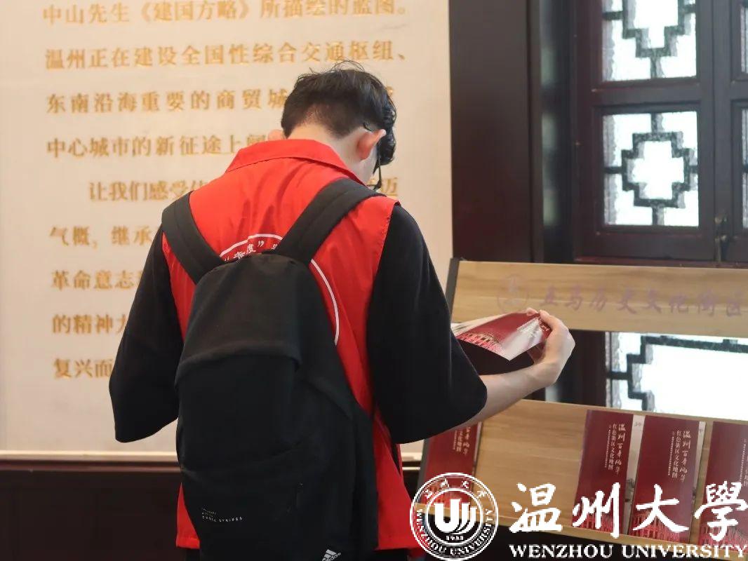 接着,我们来到了温州府学文庙。刚进门,里面的负责人就十分热情地和我们打招呼,并为我们拍了照片。接着,负责人又详细地为我们介绍了馆中陈列的展品,馆中的工作人员还贴心地给每个实践队员发了一个信封,我们都拿着信封在门口盖了纪念章。这次参访不仅让我们深刻地感悟到了中国思想史的变迁,也感受到了东瓯文化的博大精深。