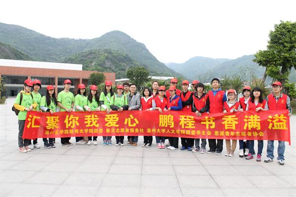 思源青年志愿者协会携手温州医学院眼视光春泥志愿者服务社志愿者前往温州特殊教育学校进行“一本书的漂流”爱心书籍传递系列活动。